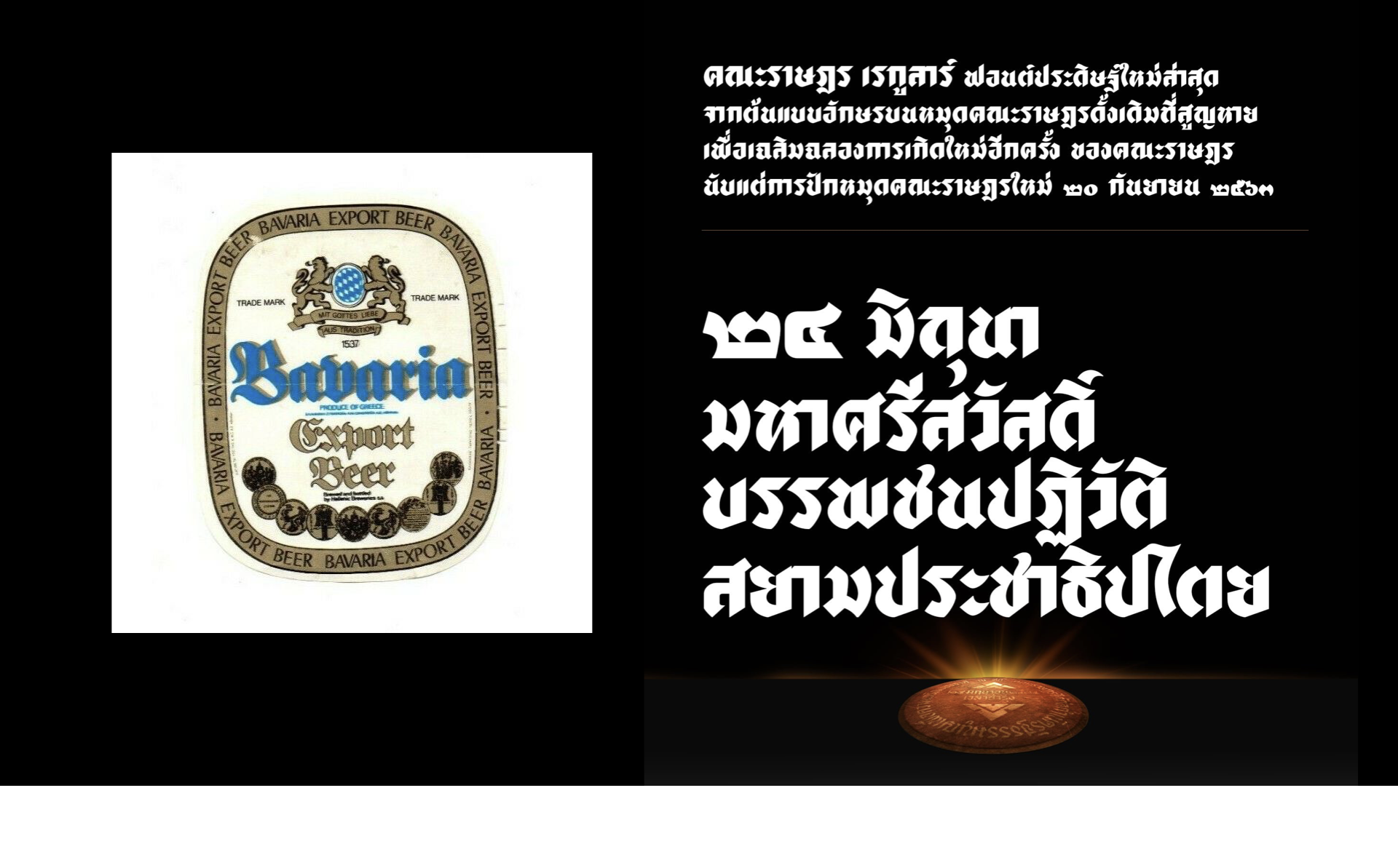 จากการค้นคว้าของ เอนก นาวิกมูล พบว่าก่อนการอภิวัฒน์สยามไม่นาน อุตสาหกรรมหนังสือพิมพ์เบ่งบานอย่างมาก เช่นเดียวกับการใช้ฟอนต์ที่มีเส้นหนาและมีขนาดใหญ่สำหรับการพาดหัวข่าว เช่น ฟอนต์โป้งแซ (ออกแบบโดย นายแซ ช่างแกะ) ที่ได้รับความนิยมอย่างมาก ซึ่งได้ปรากฏทั้งในป้ายร้านค้า และใบปิดประชาสัมพันธ์ ซึ่งรวมถึงใบปิด ‘ประกาศคณะราษฎร’ ในปี พ.ศ. 2475 และภายหลังการอภิวัฒน์สยาม ที่คณะราษฎรพยายามนำเข้ารูปแบบของศิลปกรรมและสถาปัตยกรรมที่มีความทันสมัยจากต่างประเทศเข้ามา อิทธิพลดังกล่าวยังปรากฏอยู่ในฟอนต์ที่ถูกใช้เพื่อการสื่อสาร ซึ่งเห็นได้ชัดคือการใช้ตัวพิมพ์เหลี่ยม หรือตัวอักษรหัวตัดที่มีความแตกต่างจากรูปแบบการเขียนมือดั้งเดิมอย่างเห็นได้ชัด ตัวอักษรดังกล่าวมีจุดเริ่มต้นมาจากสมเด็จเจ้าฟ้ากรมพระยานริศรานุวัดติวงศ์ ‘นายช่างใหญ่แห่งกรุงสยาม’ ที่ได้ประยุกต์ฟอนต์ Blackletter จากภาษาอังกฤษมาเป็นตัวอักษรไทย รูปแบบของฟอนต์นี้ปรากฏชัดผ่านการพิมพ์ ‘หลัก 6 ประการ’ ของคณะราษฎร ไปจนถึงข้อความที่ปรากฏบนหมุดคณะราษฎร (ภายหลังที่จอมพล ป. พิบูลสงคราม ดำรงตำแหน่งนายกรัฐมนตรี ก็ยังใช้ตัวเหลี่ยมดังกล่าวในเอกสารราชการ)